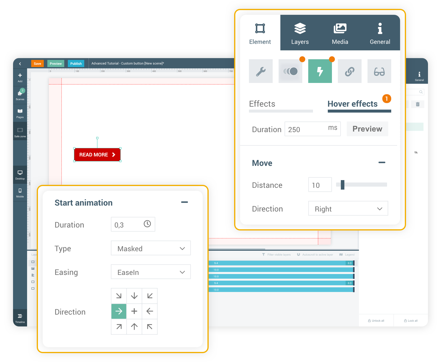 Create your own custom buttons using animations and effects in Maglr to create powerful buttons which enriches your publication.