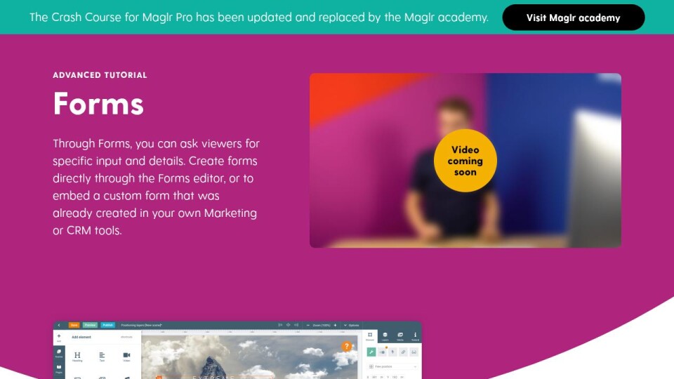 For when you’ve already set up a custom form through your preferred Marketing or CRM tool, you can use the Form element in Maglr to place your custom form directly onto the page. All responses coming from your form will then be forwarded straight to your own custom database.