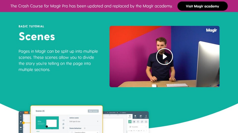 Pages in Maglr can be split up into multiple scenes. These scenes allow you to divide the story you’re telling on the page into multiple sections.