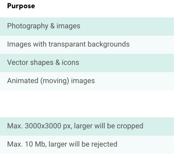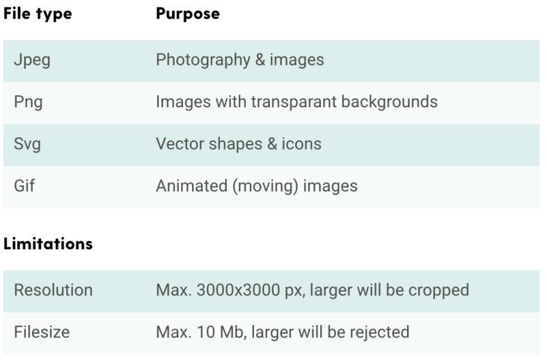 You can use all types of image files in Maglr, with each image type having their own purpose. Keep an eye on the file size, as it will determine how long your Maglr page will take to load on the devices of your viewers. A general rule of thumb here: upload images in double their actually used size (i.e. upload 60x60px images for 30x30px element frames) to ensure sharp display on retina screens.
